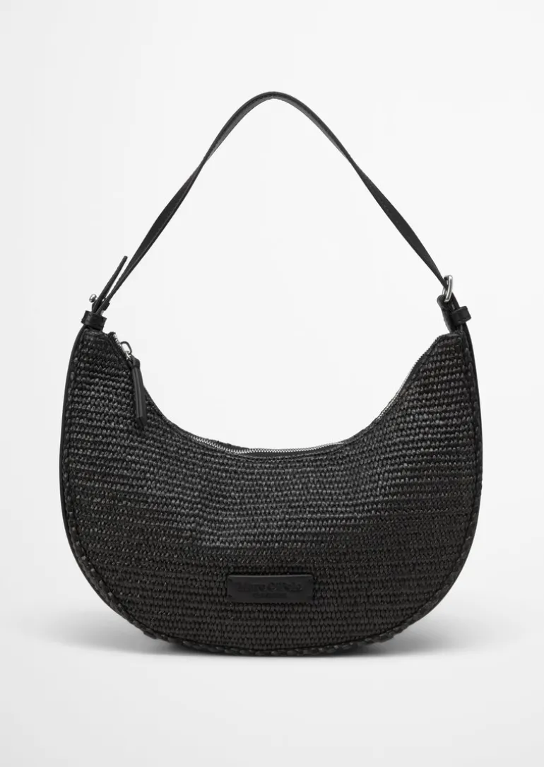 2in1 Umhängetasche small in Raffia-Bast-Optik in schwarz