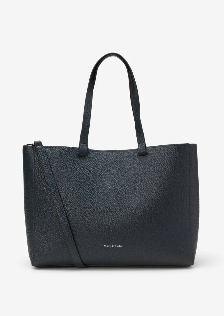 3-in-1 Shopper medium aus genarbtem Rindleder in blau