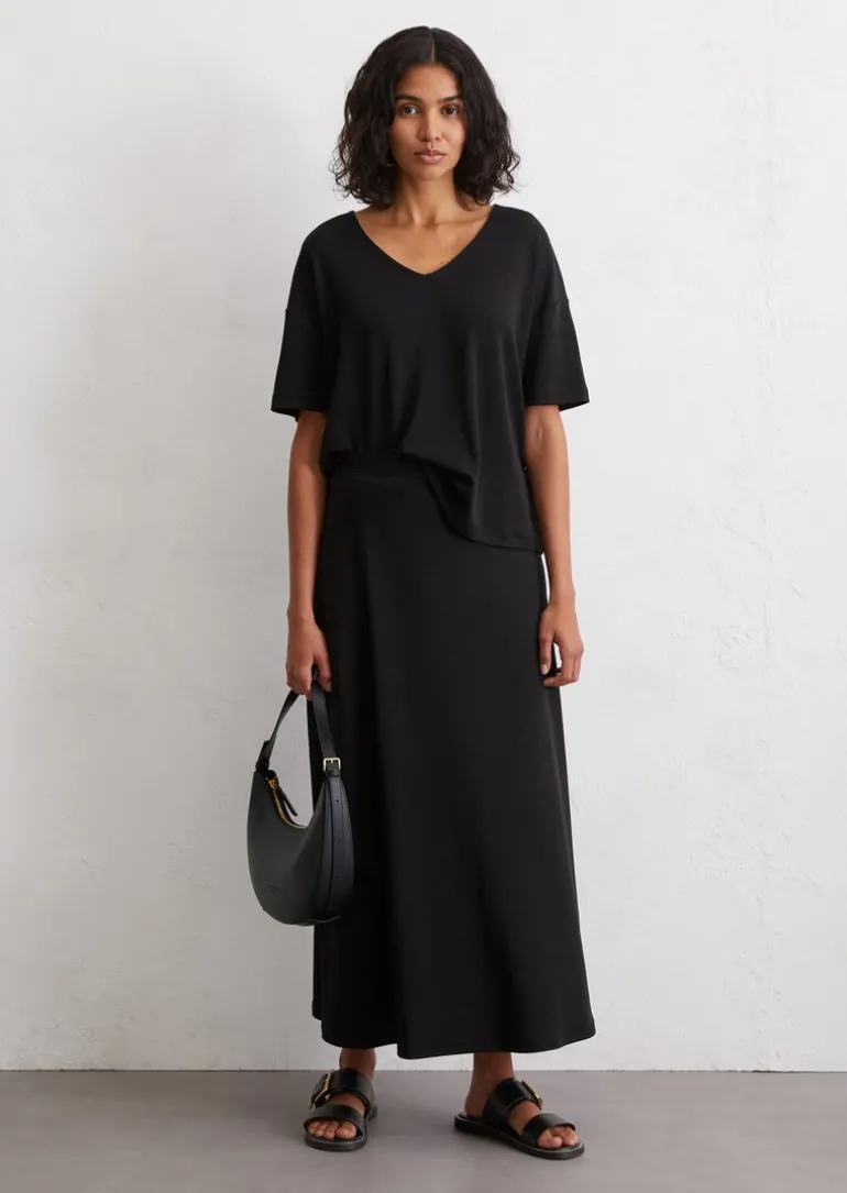 A-Linien-Jersey-Rock aus elastischem Vikose-Mix in schwarz