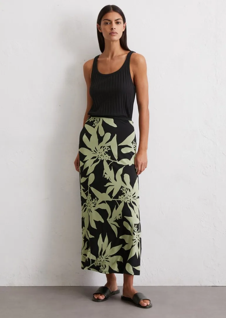 A-Linien-Jersey-Rock aus elastischem Vikose-Mix in schwarz