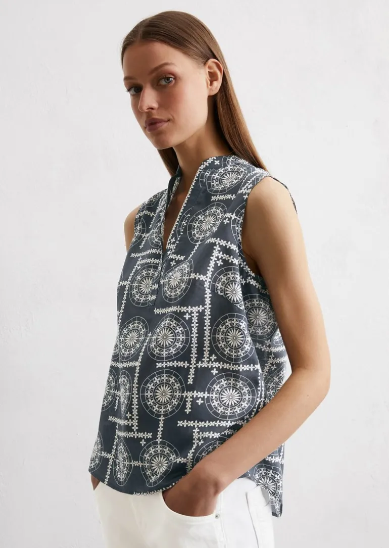 Ärmellose Print-Bluse flared aus leichtem Baumwoll-Voile in mehrfarbig