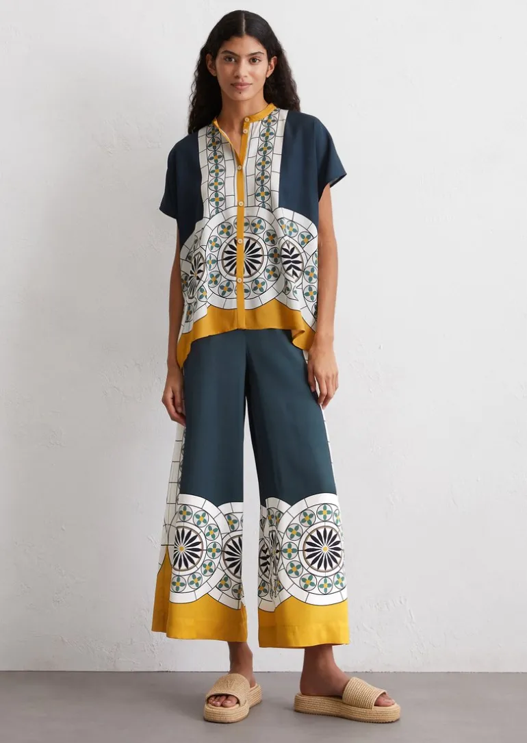 Ärmellose Print-Bluse relaxed aus ECOVERO™ von LENZING™ in blau
