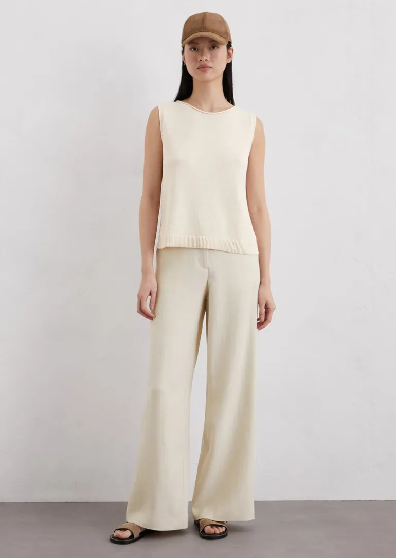 Ärmelloser Strickpullover regular aus Leinen-Mix in weiss