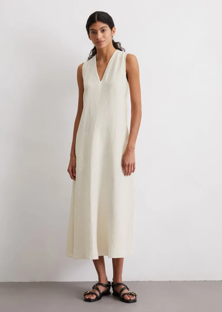 Ärmelloses Leinen-Kleid shaped in A-Linie geschnitten in beige