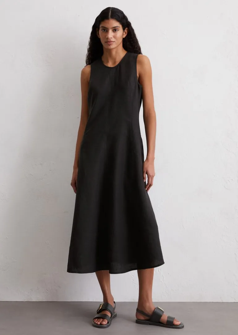Ärmelloses Leinen-Kleid shaped in A-Linie geschnitten in schwarz