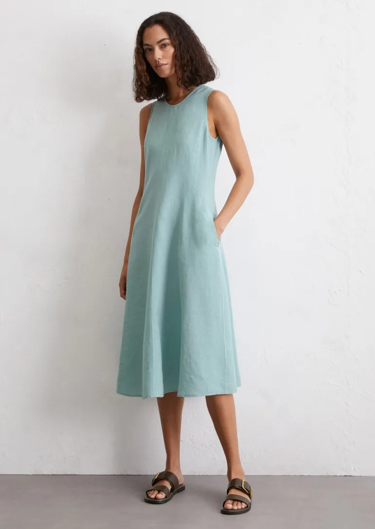 Ärmelloses Leinen-Kleid shaped in A-Linie geschnitten in grün