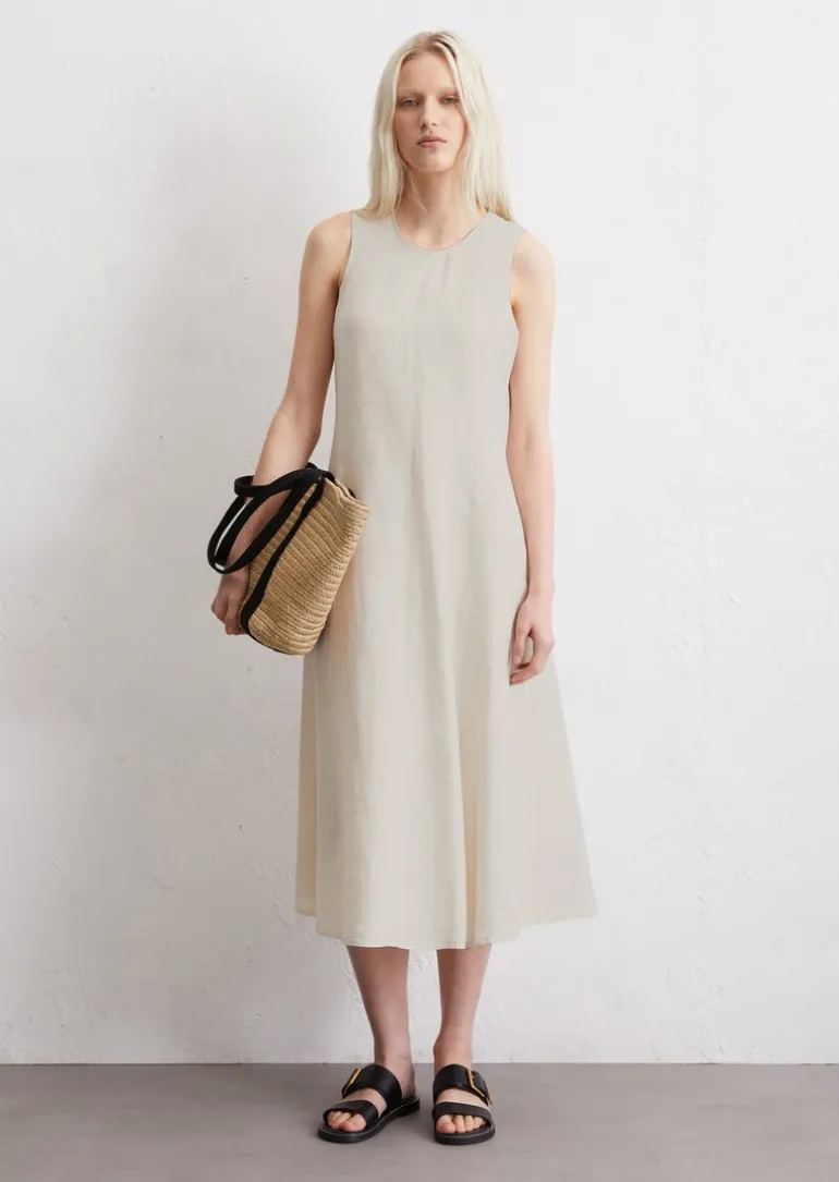 Ärmelloses Leinen-Kleid shaped in A-Linie geschnitten in beige