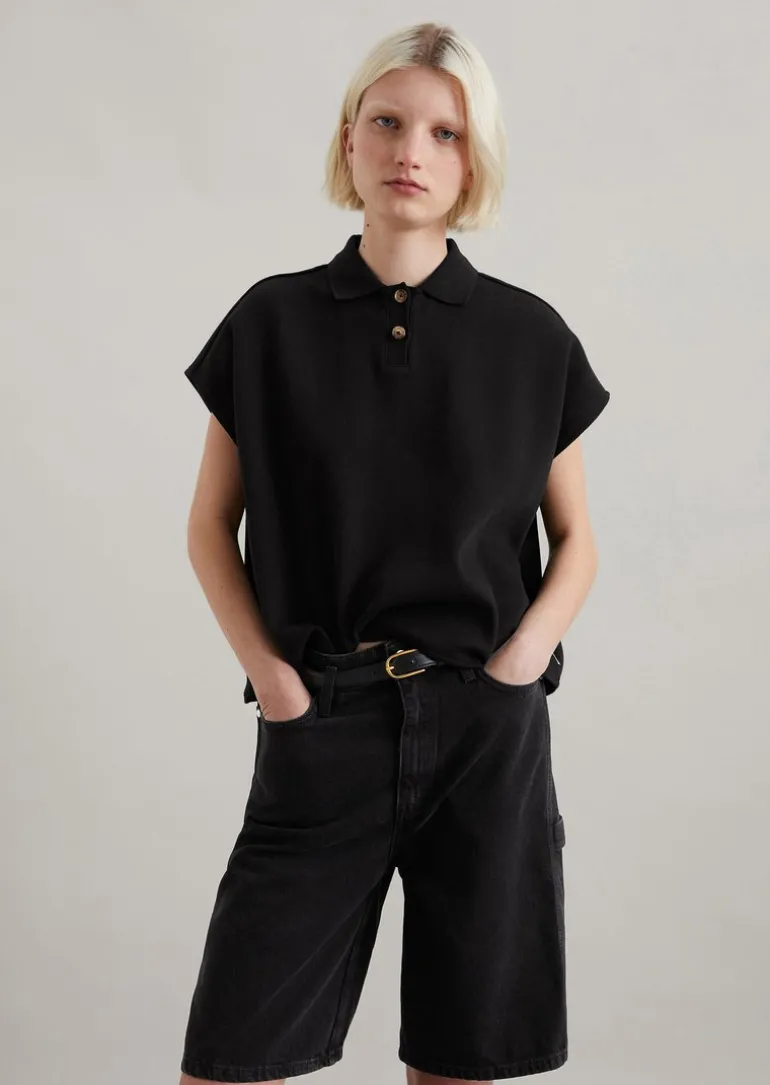 Ärmelloses Poloshirt wide aus Organic Cotton in schwarz
