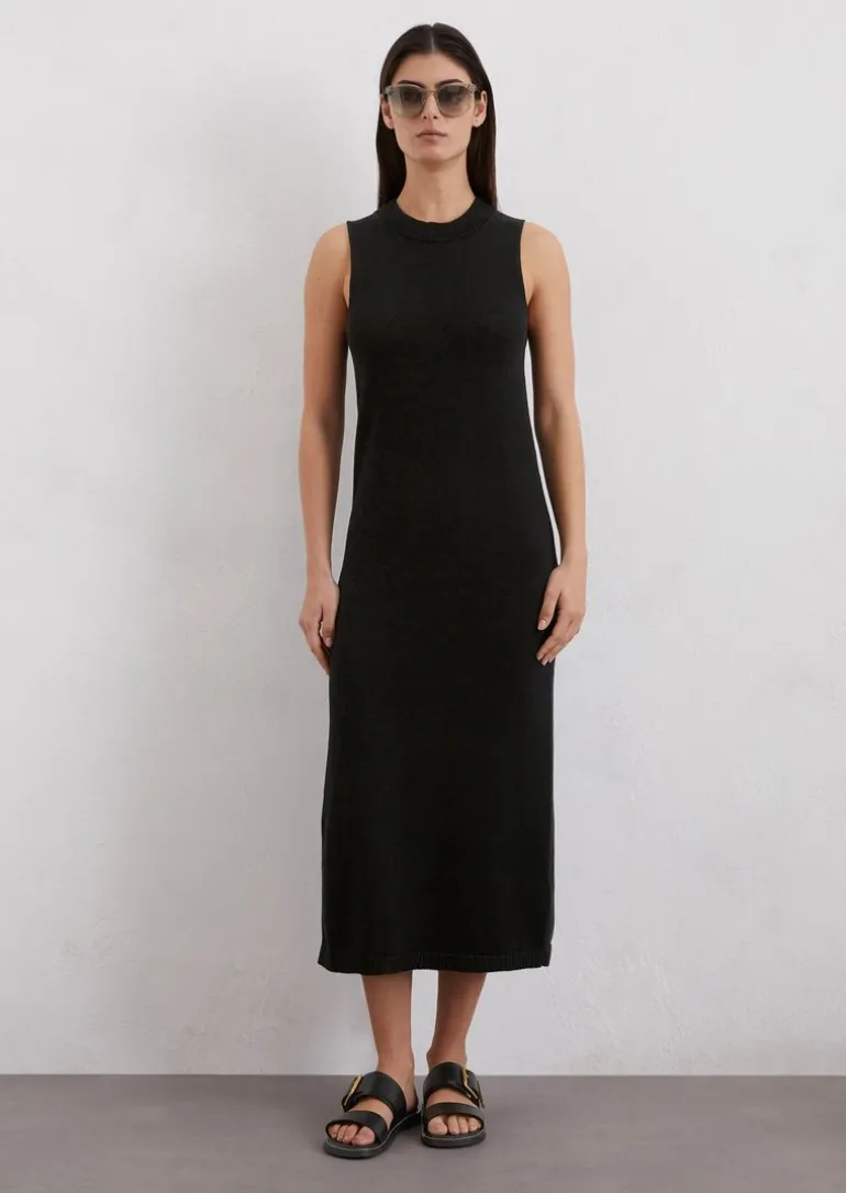 Ärmelloses Strickkleid slim aus Bio-Baumwolle-Leinen-Mix in schwarz