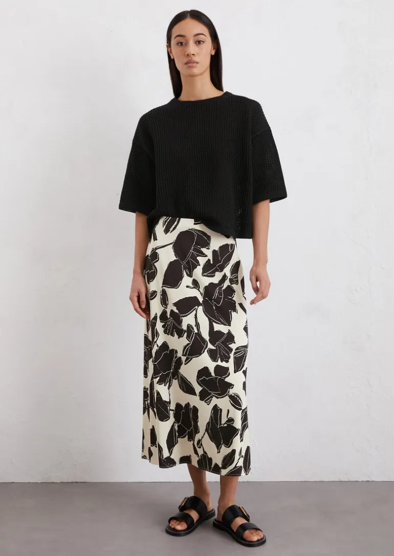 Ausgestellter Print-Satinrock aus Viskose-Stretch