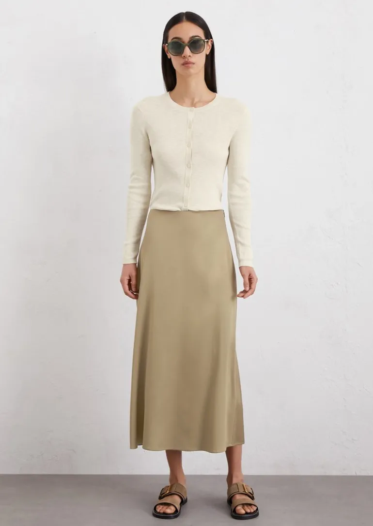 Ausgestellter Satinrock aus Viskose-Stretch in beige