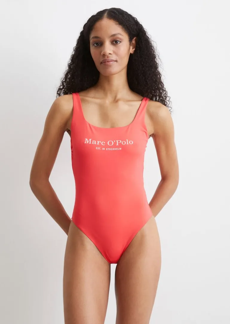 Badeanzug mit kontrastfarbenem Logo in rot