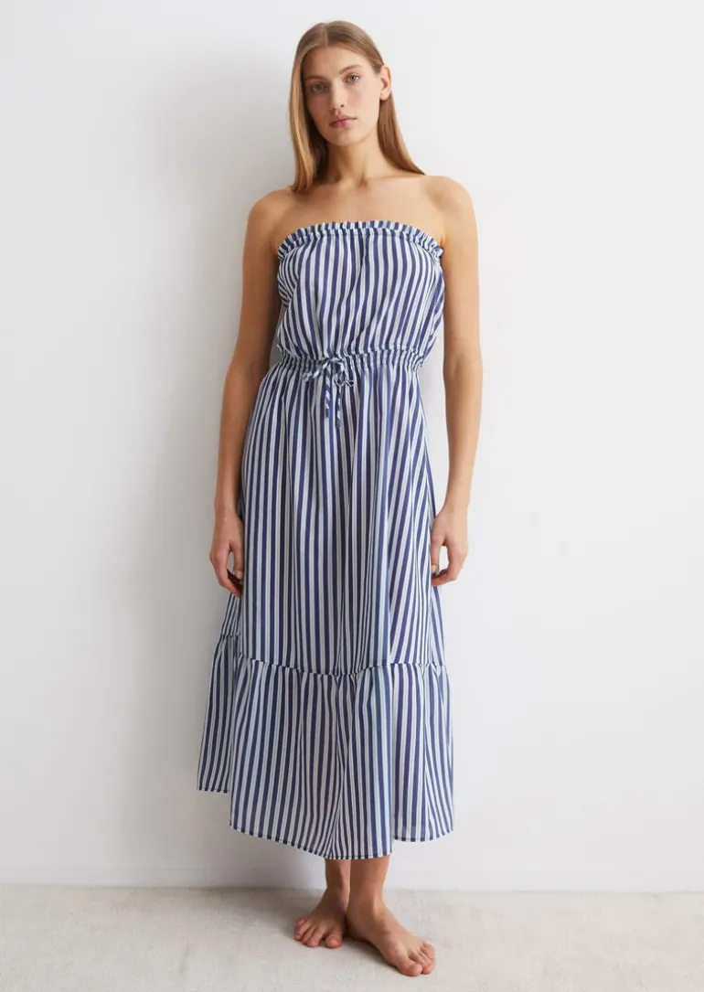 Bandeau-Strandkleid aus Recyling-Material in blau