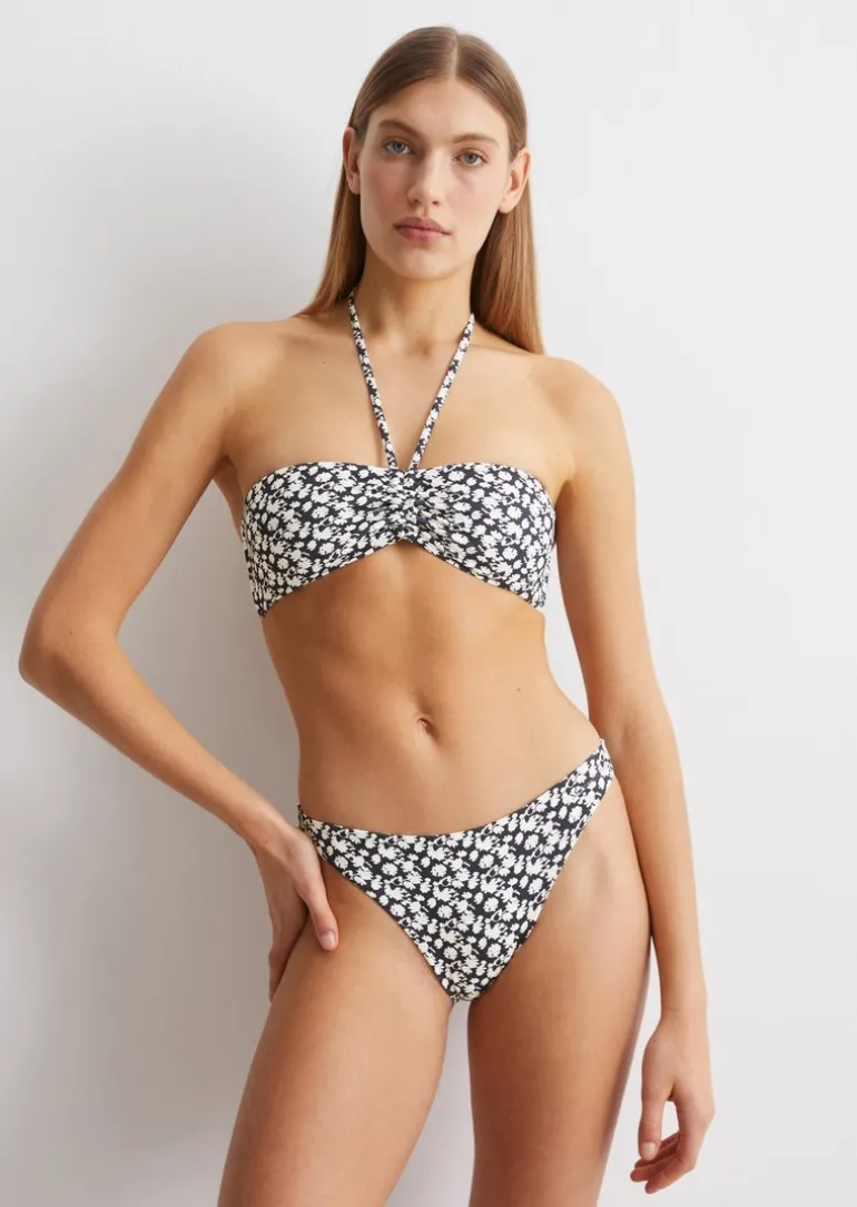 Bikini-Slip mit floralem Print in blau