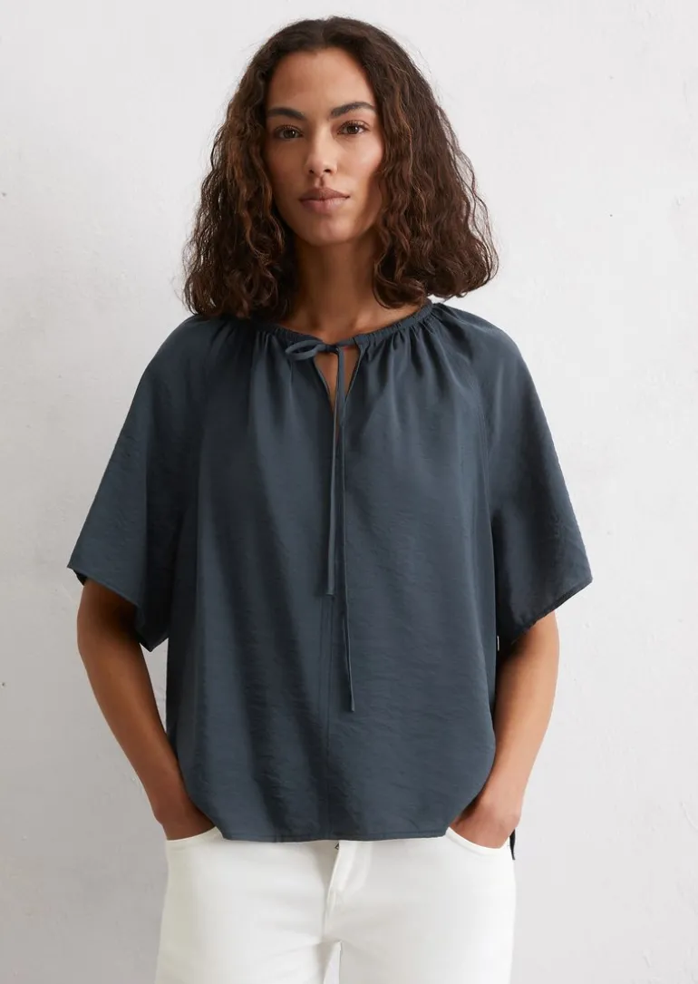 Bluse relaxed mit Crinkle-Struktur in blau