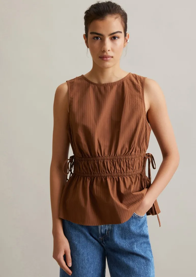 Blusentop shaped aus strukturiertem Baumwoll-Dobby in braun