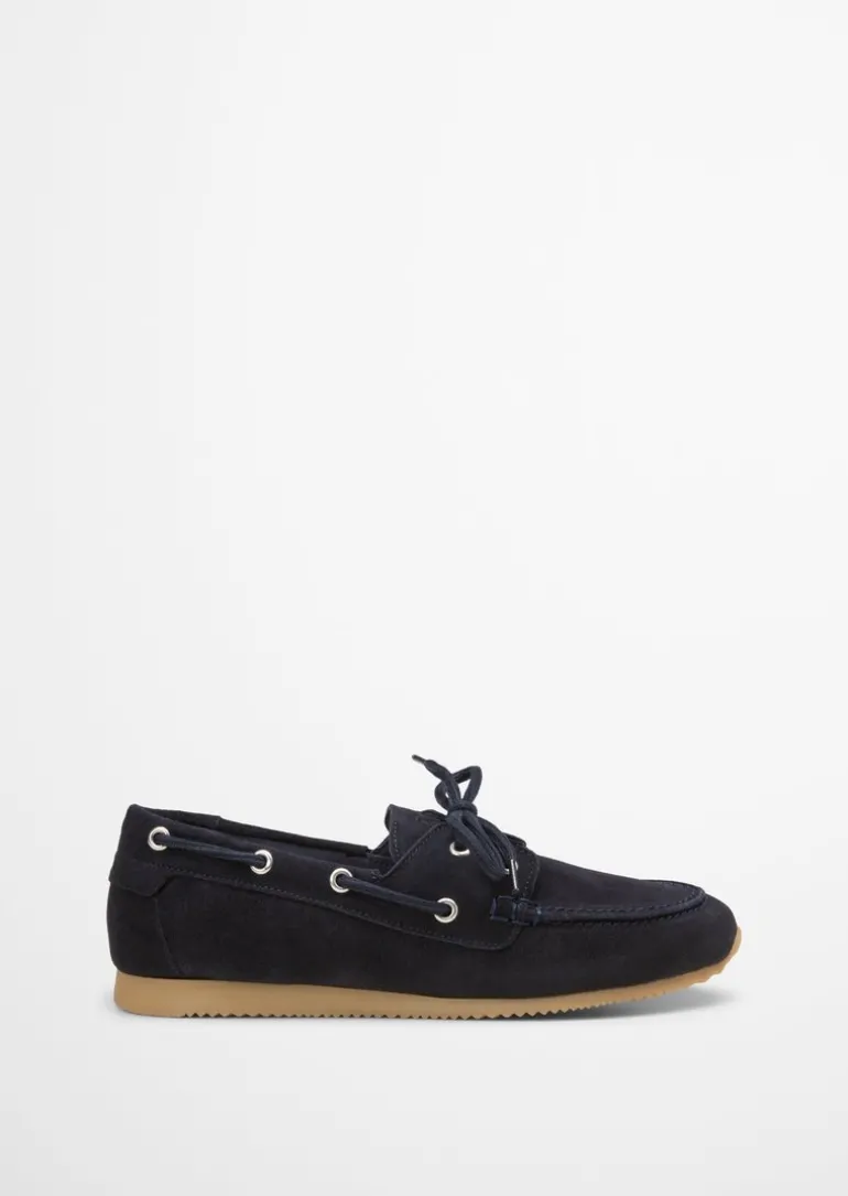 Bootsschuh aus Velours-Rindleder in blau