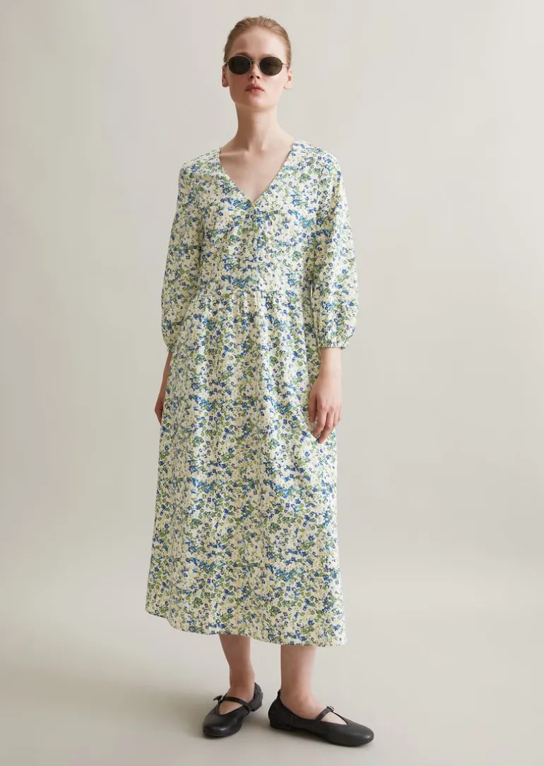 Crinkle-Printkleid relaxed aus Viskose-Mix mit Seersucker-Effekt in blau
