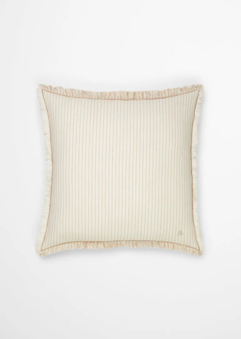 Dekokissen Model Fine Stripe aus Bio-Baumwolle und Leinen in beige