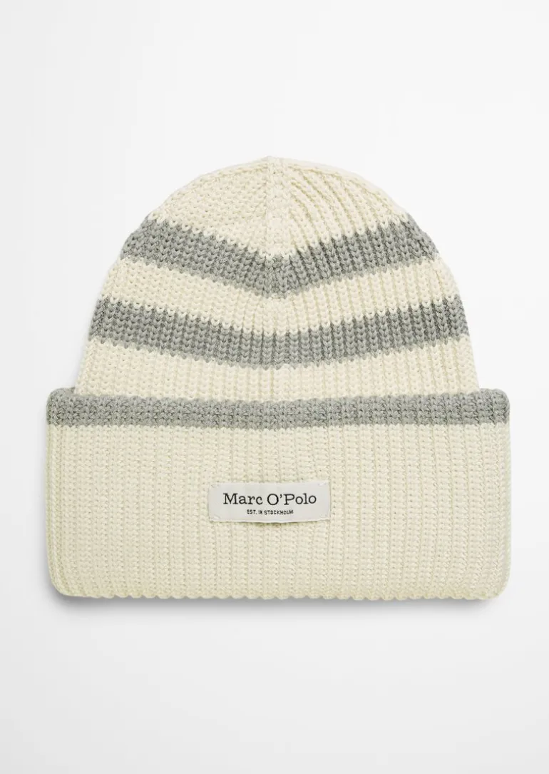 DfC Gestreifte Strickmütze aus Bio-Baumwolle in grau