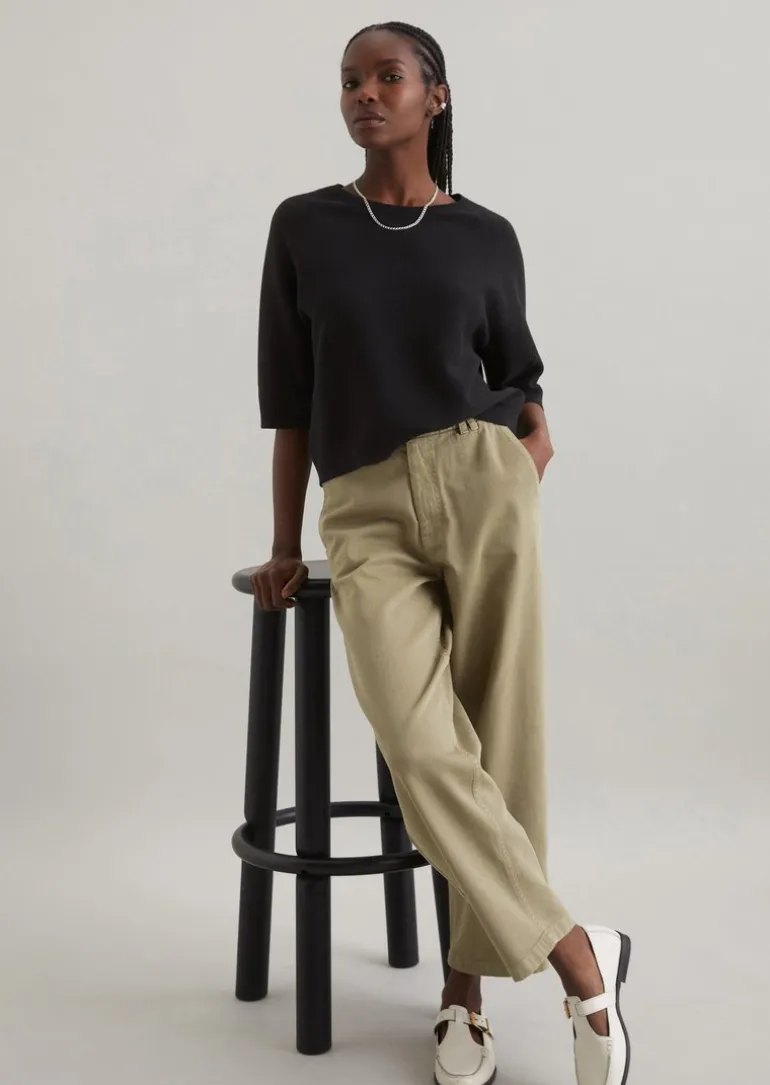 DfC Kurzarm-Strickpullover loose aus Organic Cotton in schwarz