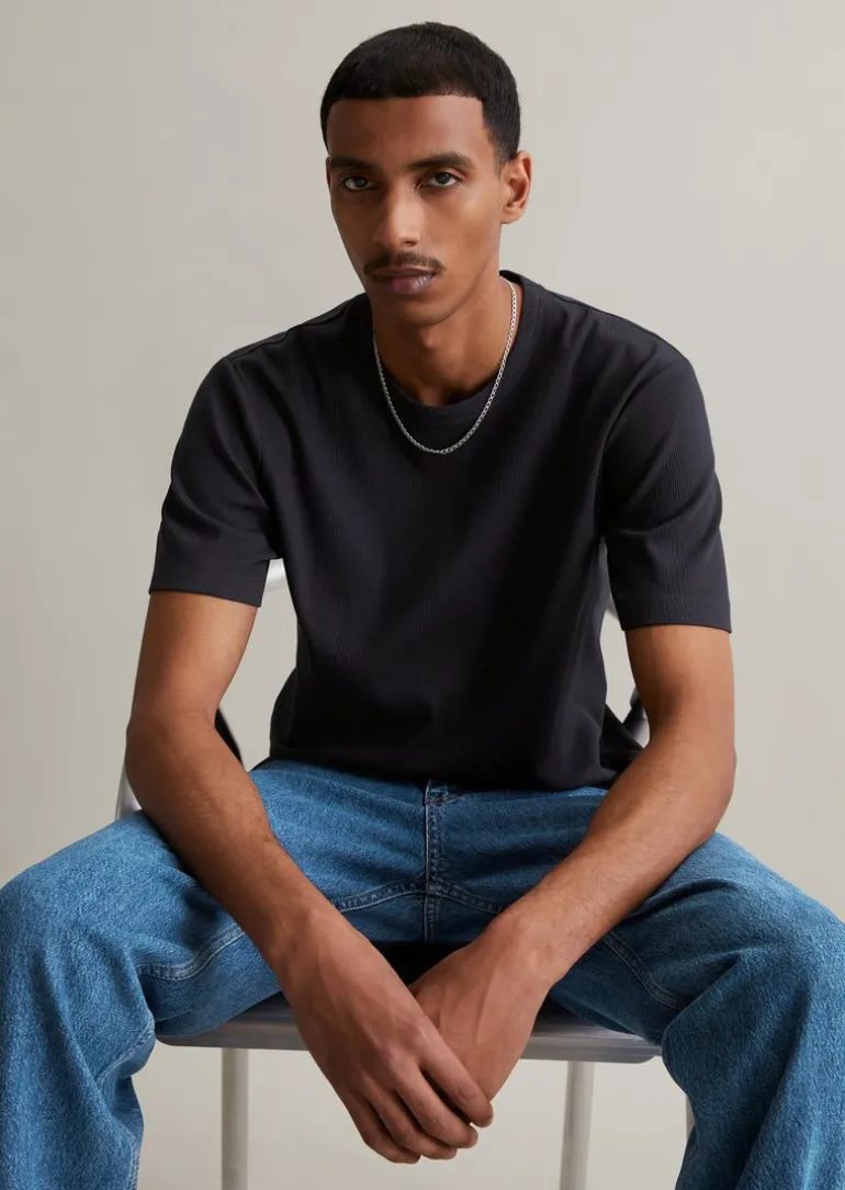DfC Ripp-T-Shirt regular aus Bio-Baumwoll-Mix in blau