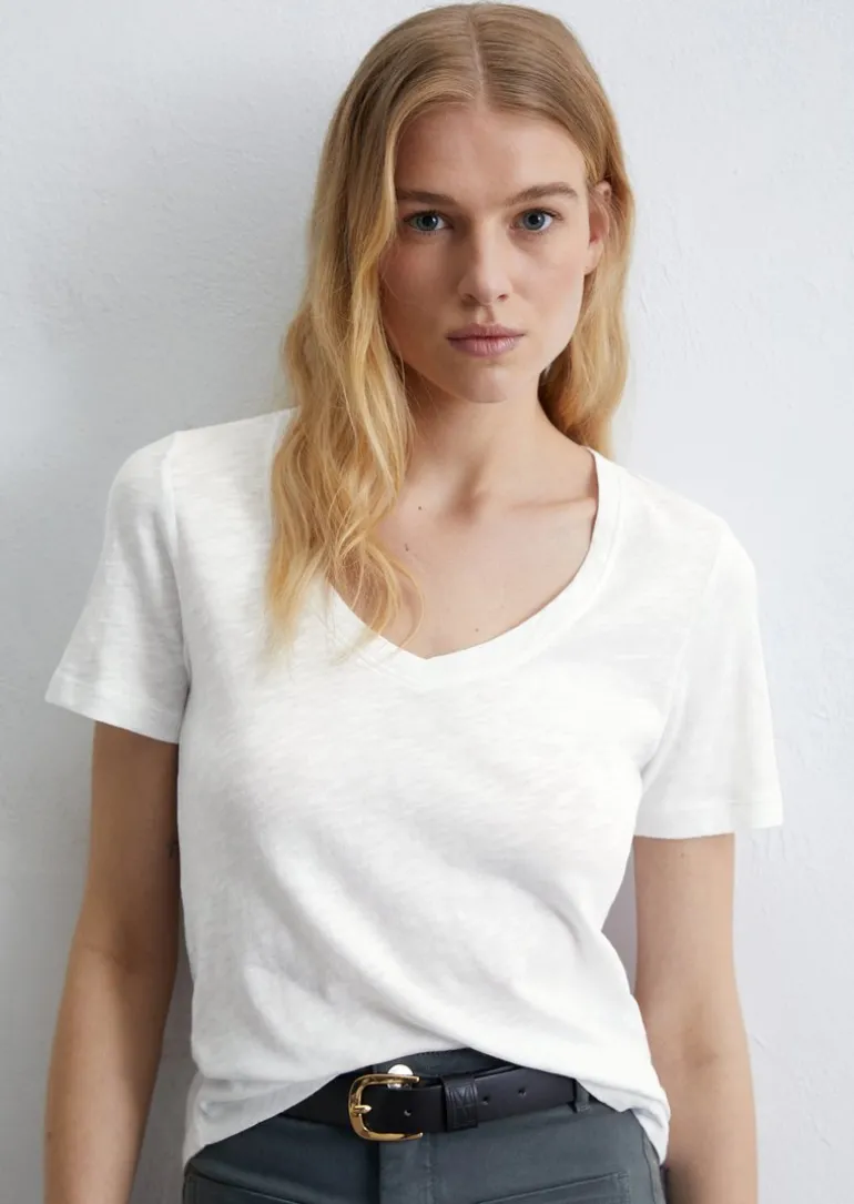 DfC V-Neck-T-Shirt regular aus Organic Cotton Slub Jersey in weiss