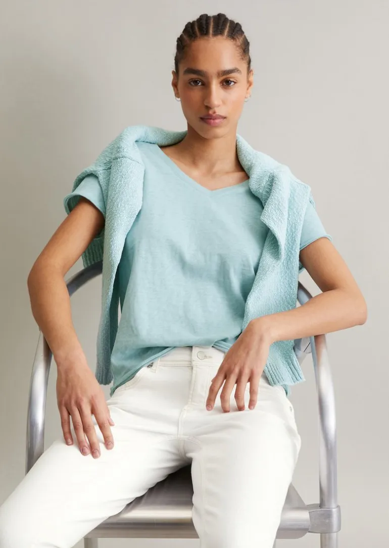 DfC V-Neck-T-Shirt regular aus Organic Cotton Slub Jersey in blau