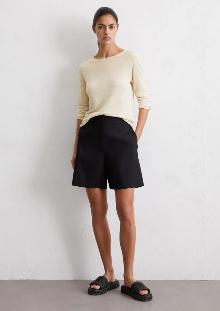 Feinstrick-Pullover slim aus reinem Leinen in beige