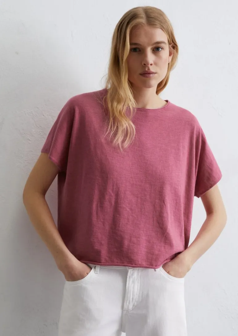 Feinstrick-T-Shirt oversize aus Baumwolle-Leinen-Slub in rosa