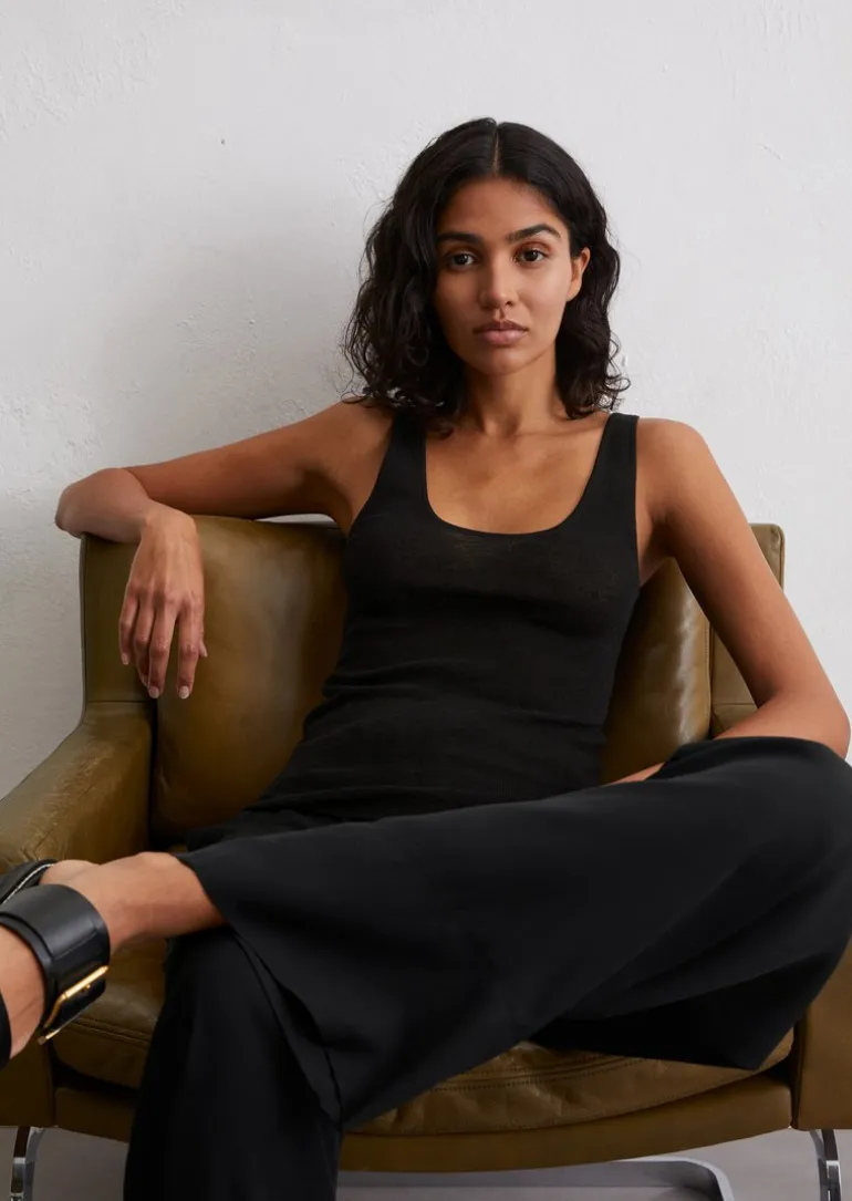 Feinstrick-Top slim aus softem Bio-Baumwolle-Mix in schwarz