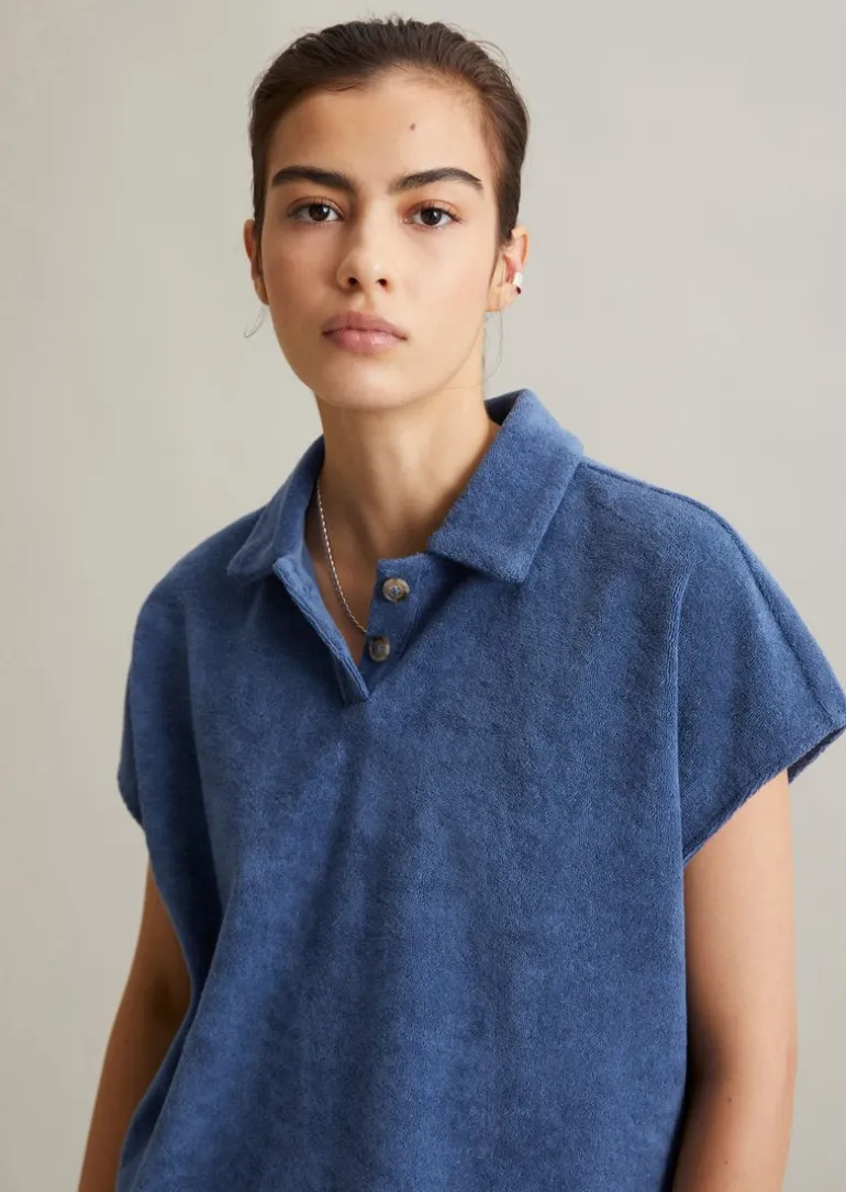 Frottee-Poloshirt wide aus softem Organic Cotton in blau