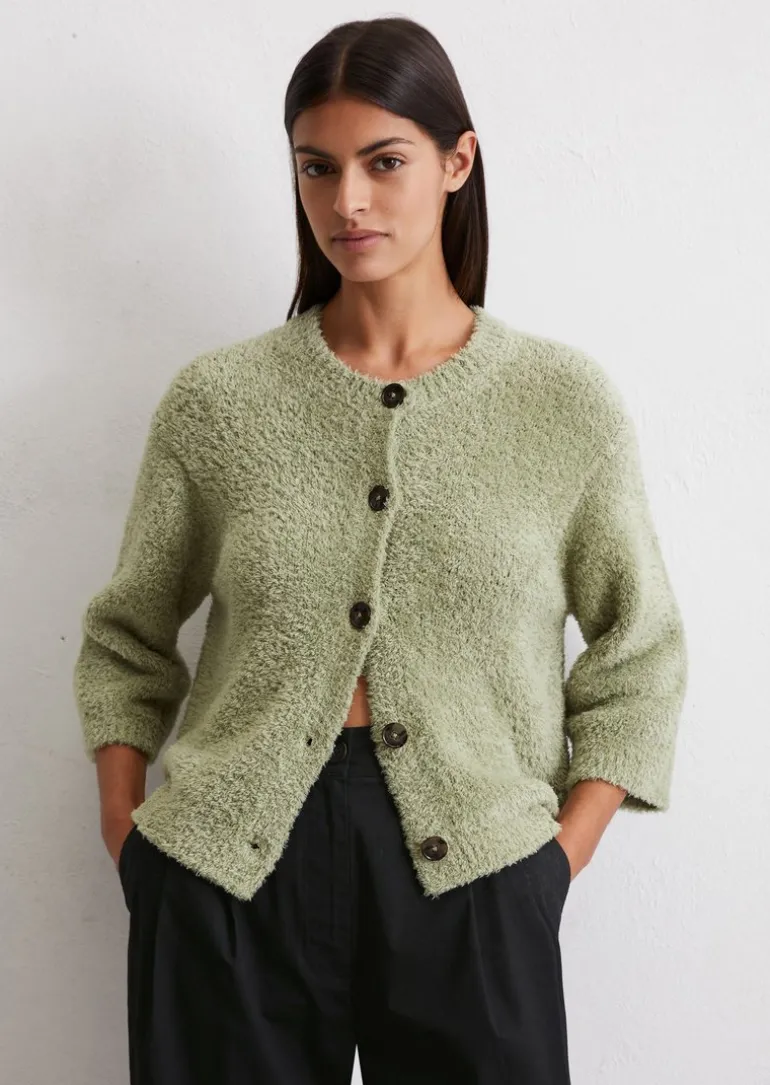 Fuzzy-Knit-Cardigan relaxed aus flauschigem Baumwollgarn in grün