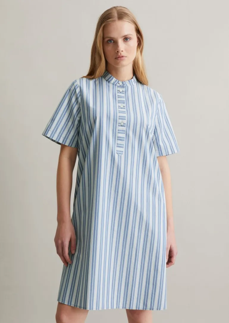 Gestreiftes Hemdblusenkleid A-Shape aus Papertouch-Popeline in blau