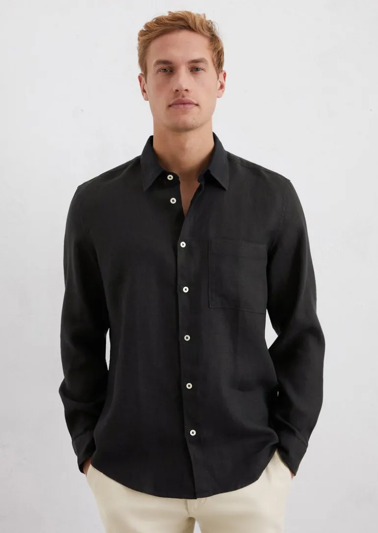 Hemd regular aus reinem Leinen in schwarz