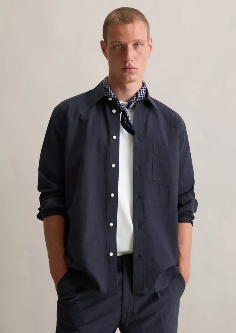 Hemd regular mit feiner Crinkle-Struktur in blau