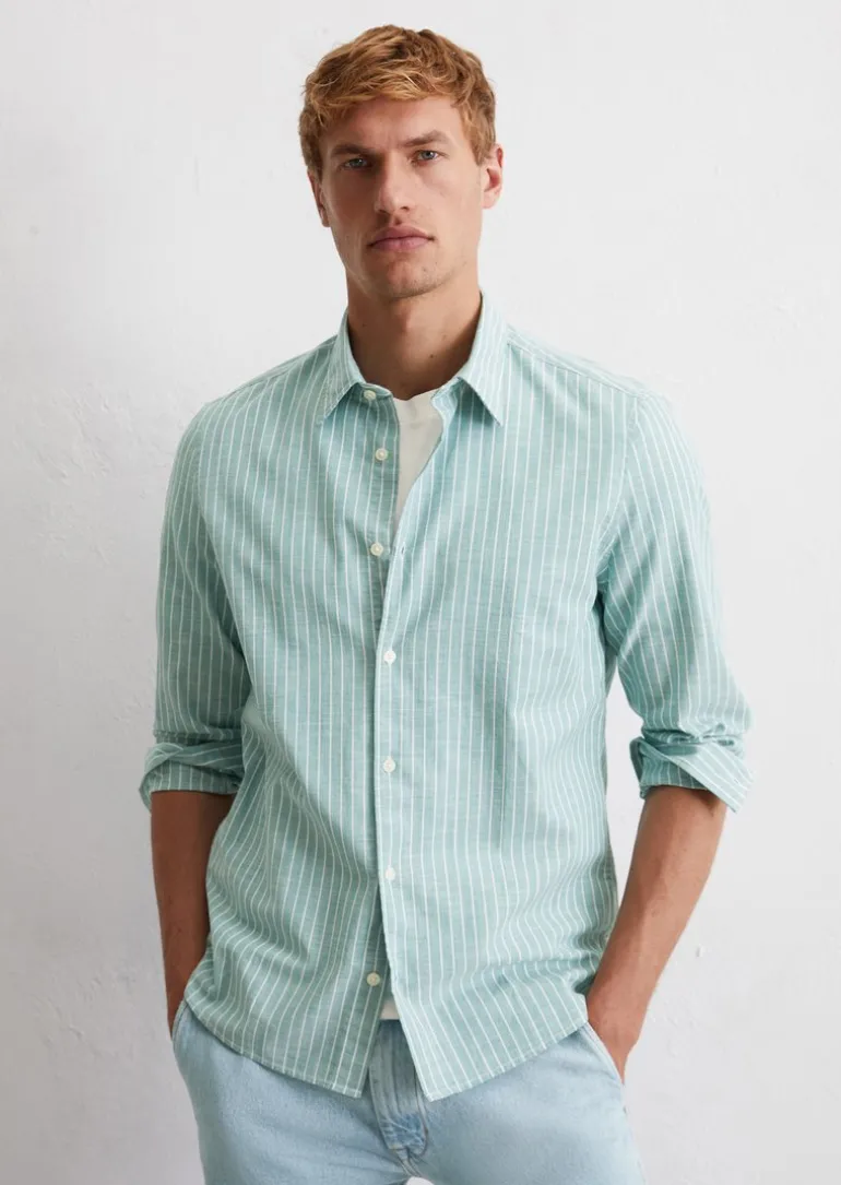 Hemd shaped aus gestreifter Bio-Baumwolle in grün