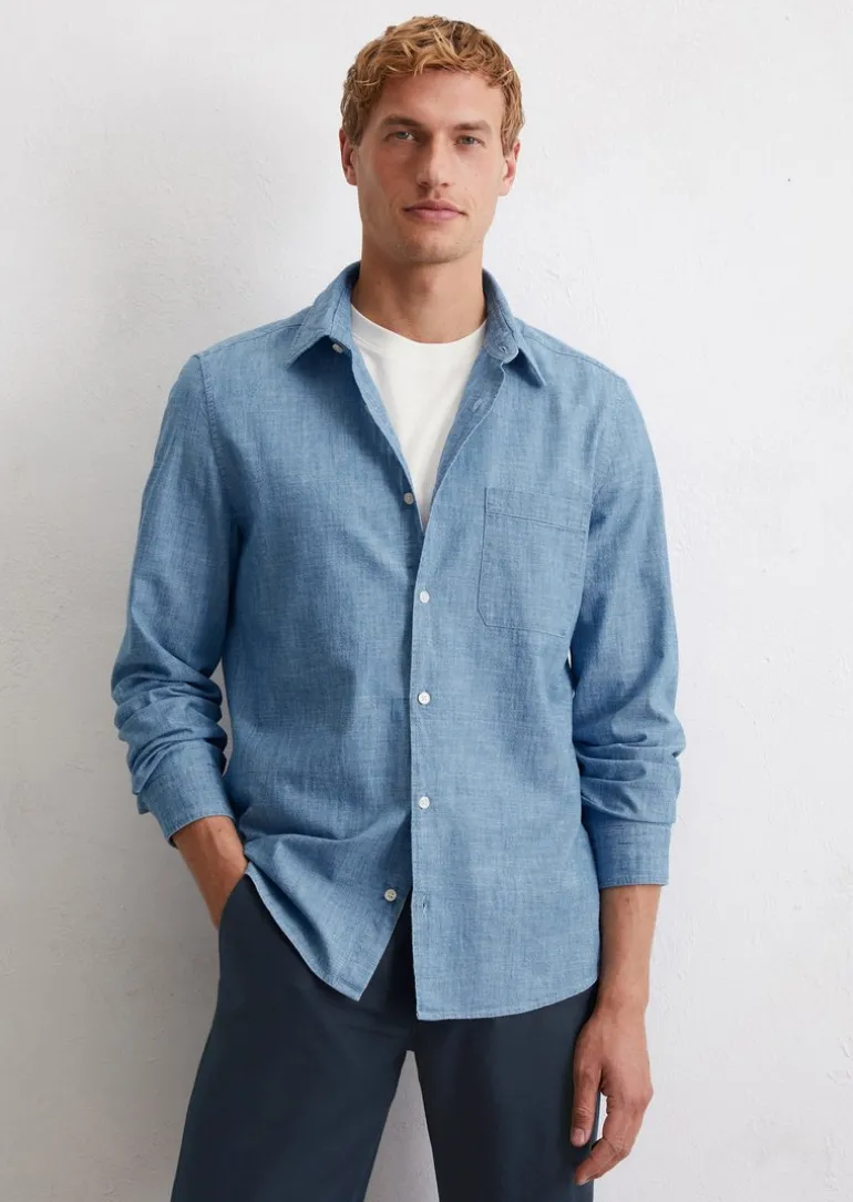 Hemd shaped aus leichtem Bio-Baumwoll-Chambray in blau