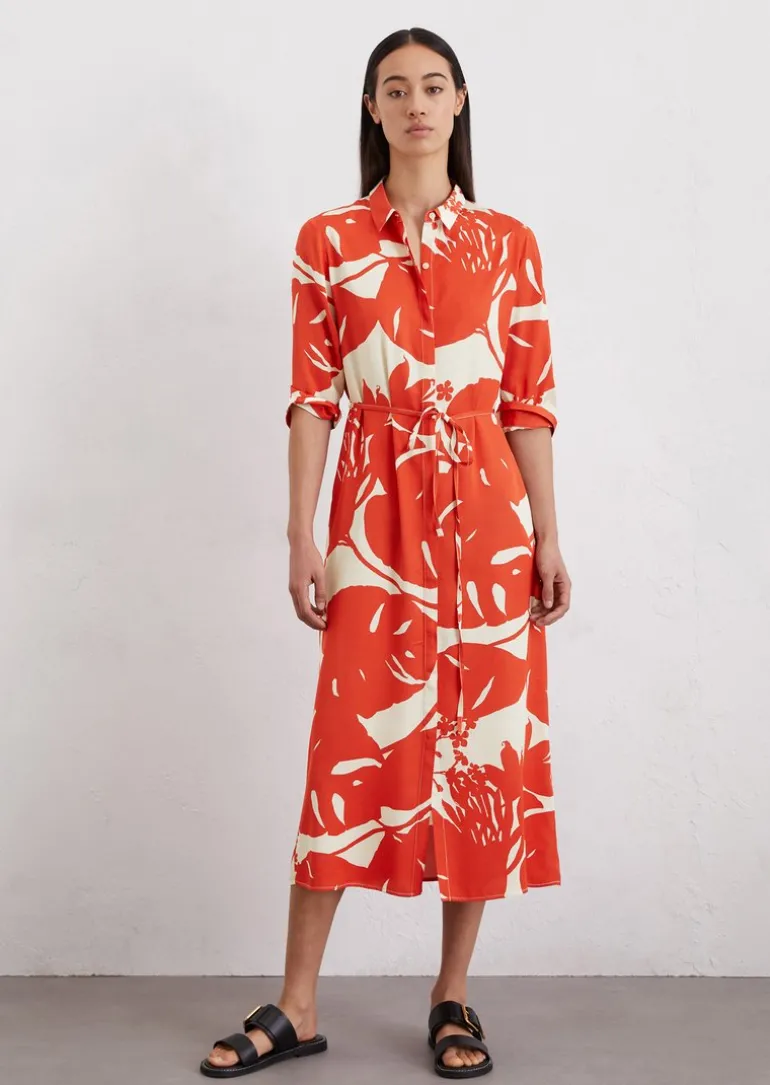 Hemdblusenkleid regular aus fließendem Viskose-Twill in mehrfarbig