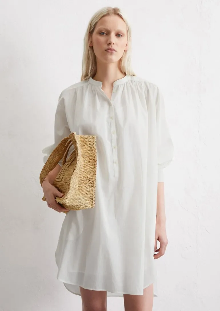 Hemdblusenkleid relaxed aus leichtem Baumwoll-Voile in weiss