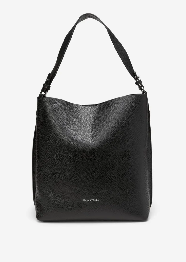 Hobo Bag medium aus genarbtem Rindleder in schwarz