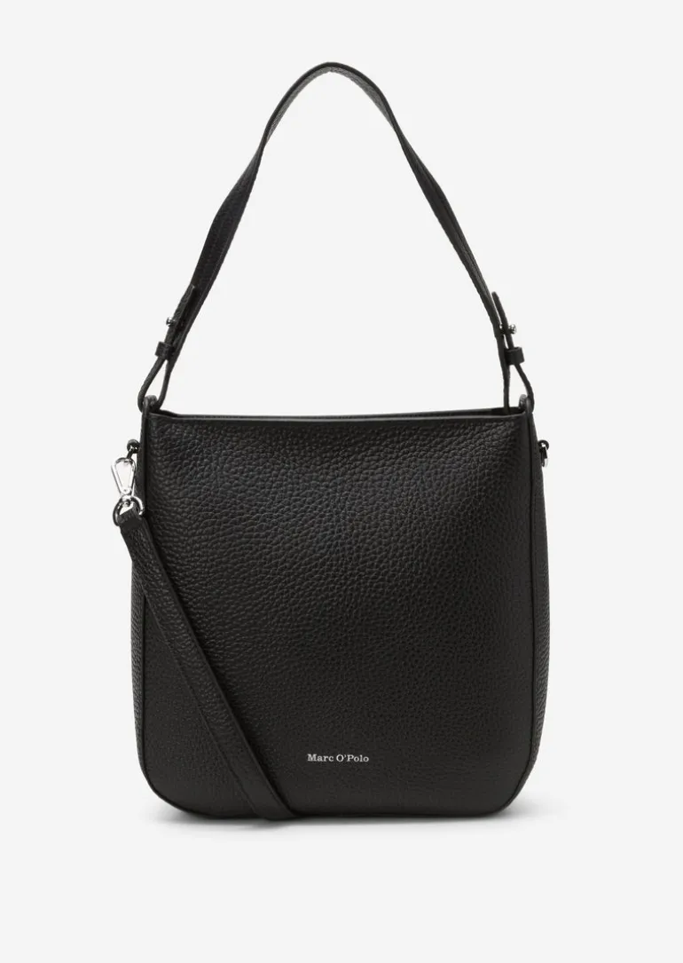 Hobo Bag small aus genarbtem Rindleder in schwarz