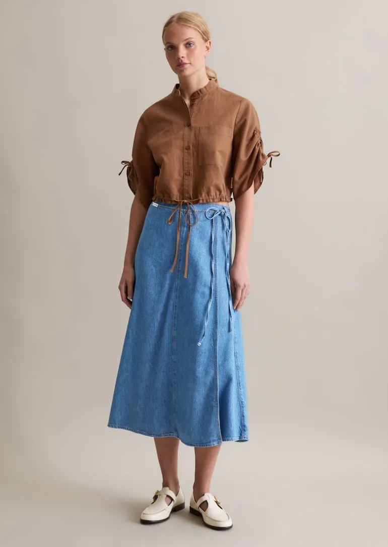 Jeans-Wickelrock wide mit recyeltem Leinen-Garn in blau