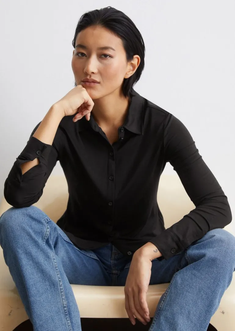 Jersey-Bluse regular aus LENZING™ ECOVERO™ in schwarz