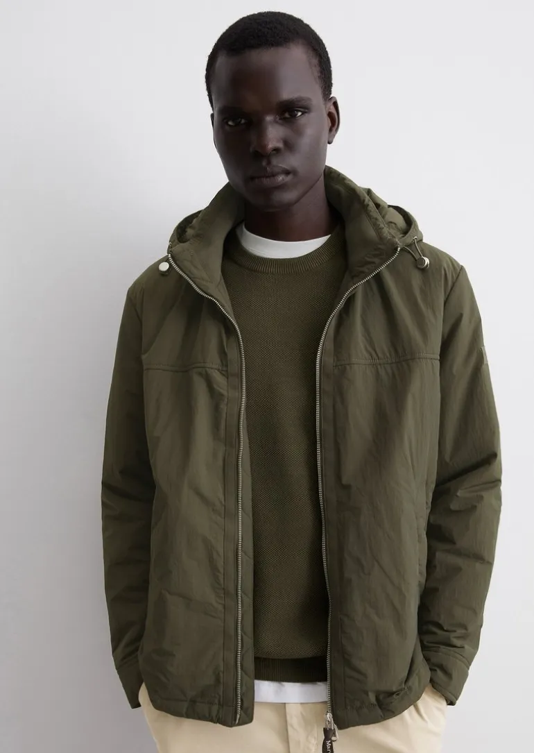 Kapuzen-Jacke regular aus wasserabweisendem, recyceltem Material in grün