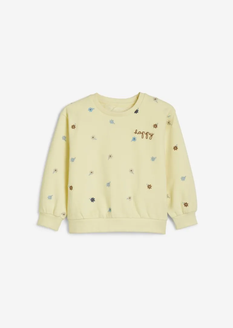 KIDS-GIRLS Sweatshirt mit gestickten Blümchen in gelb
