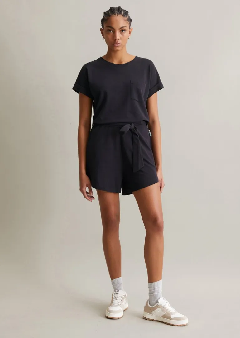 Kurz-Overall relaxed aus Piqué-Jersey in blau