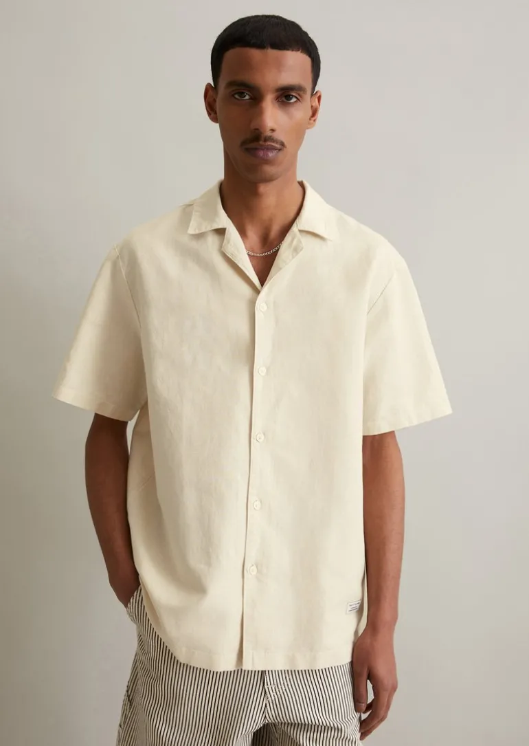 Kurzarm-Hemd regular aus Leinen-Bio-Baumwoll-Mix in weiss