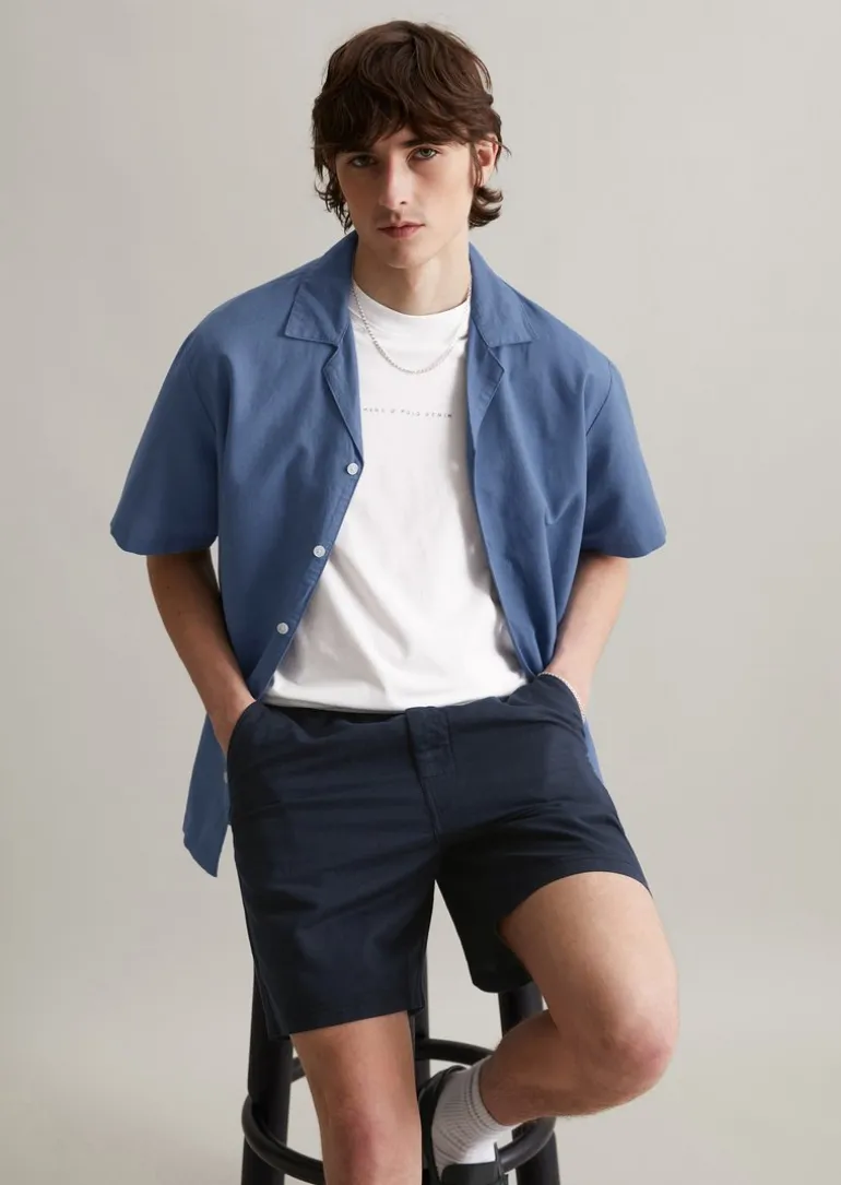 Kurzarm-Hemd regular aus Leinen-Bio-Baumwoll-Mix in blau