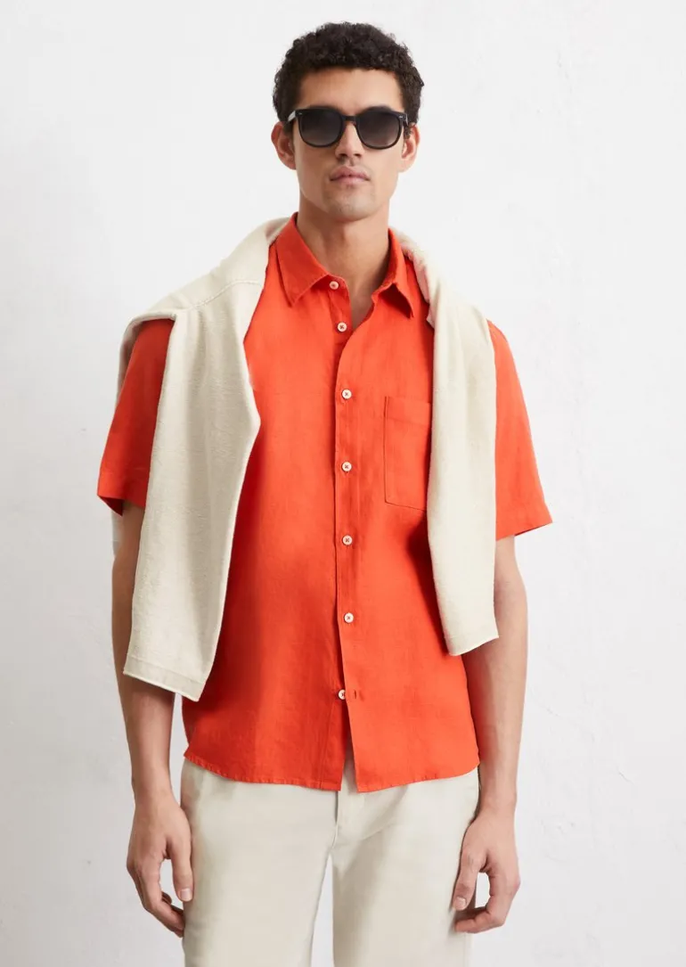 Kurzarm-Hemd regular aus reinem Leinen in orange